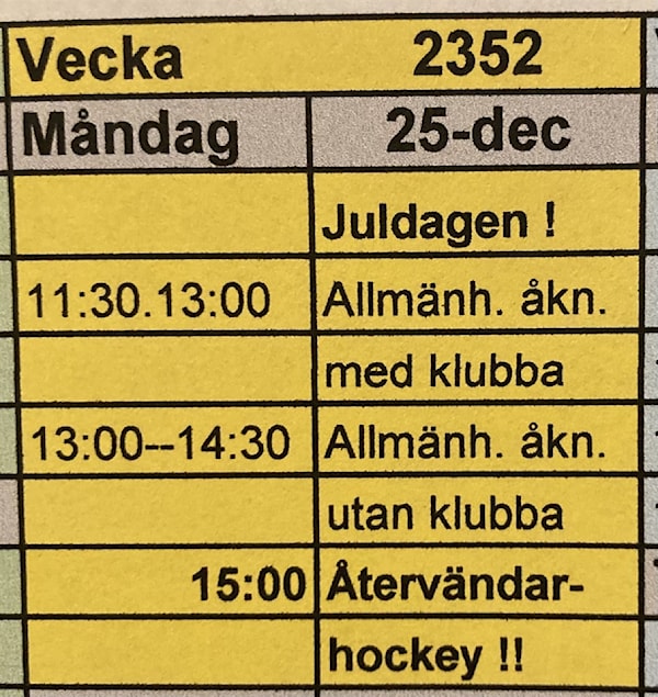 OBS! Ändring i isschemat Juldagen 25/12 ! (Se bild)