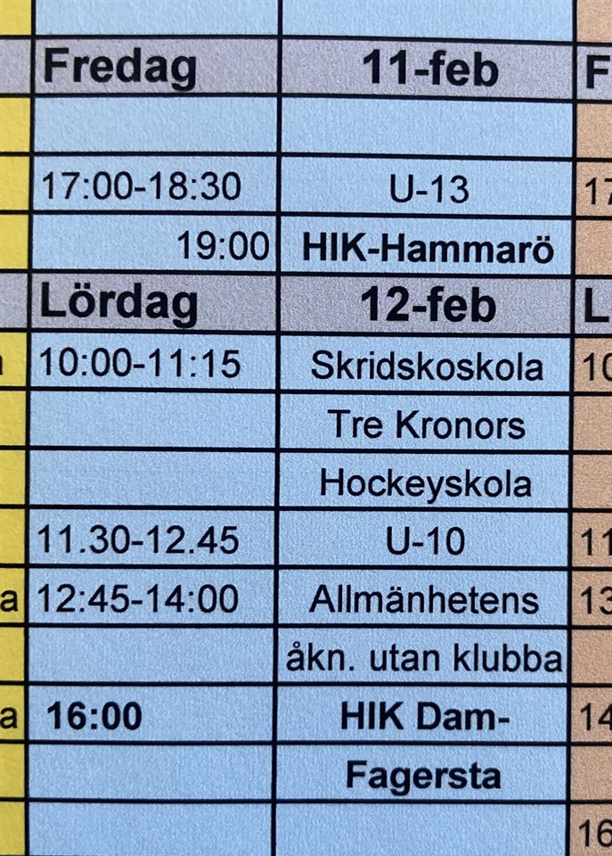 • OBS! Ändring i isschemat 12 februri !