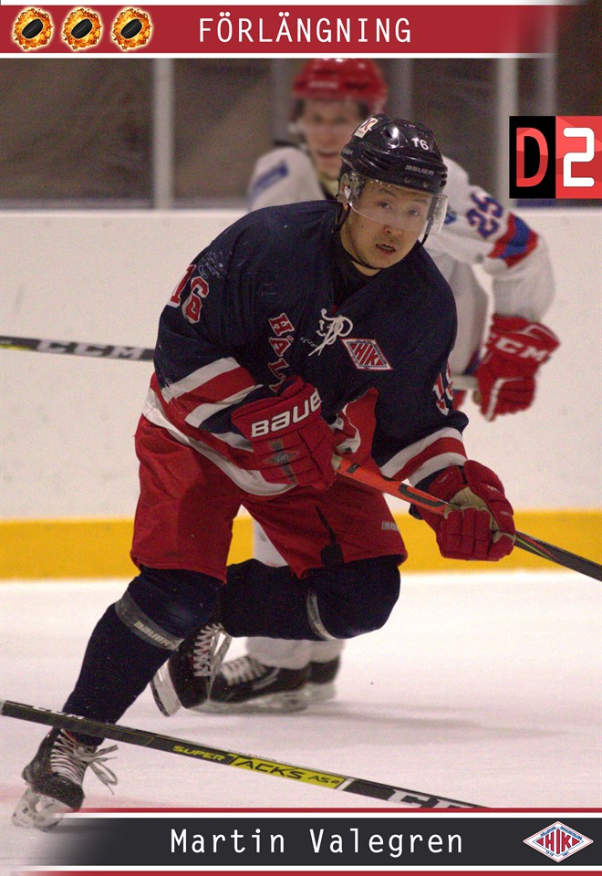 Martin Valegren har valt att förlänga sitt kontrakt med Hällefors IK över säsongen 2020/21, den nyligen 27 år fyllda snabbskrinnaren går därmed in på sin tolfte A-lagssäsong. Den unge veteranen från Grythyttan, som i det defensiva spelet var en mycket viktig pjäs i det lag som tog sig hela vägen upp till DIV 2 vill fortsätta på den inslagna vägen. - Jag vill fortsätta att vara den stabila spelare som jag tycker att jag utvecklades till i vintras. Jag är mest nöjd med mina defensiva insatser men samtidigt så gjorde jag min poängmässigt bästa säsong sedan jag kom upp i A-laget, så allt verkar hängar ihop. En som skriver under på att Valegren hade en väldigt bra säsong i vintras är headcoach Daniel Geschwind. - Martin har en grym säsong i ryggen, och jag hoppas och tror på att han kan bevara den formen till kommande säsong. Fördelen med Martin är att man kan använda honom i många olika situationer, han blir helt klart viktig för oss i vinter med sin mångsidighet, säger A-lagschef Geschwind. När Valegren får sia om hur det kommer att gå i DIV 2 så hörs det på rösten att han ser fram emot den kommande säsongen. - Jag har stora förhoppningar, då jag tror att vi har den bästa truppen sedan jag flyttades upp i A-laget.. Vi har en grym kärna i truppen som varit med ett tag nu, när vi nu spetsar den med några vassa nyförvärv så kommer det att bli bra, avslutar Valegren som längtar till DIV 2. - Det kommer att bli så jävla kul! Text: Johan Sandström Foto: Simon Sveder