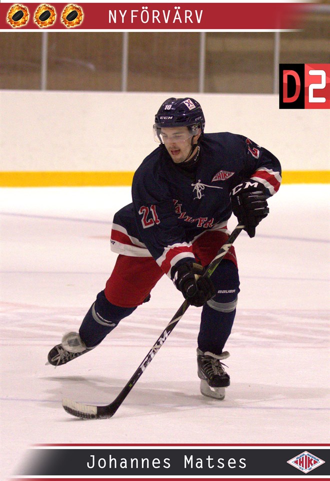 I dag kan HIK presentera en riktig stjärnvärvning då dalmasen Johannes Matses valt att spela för laget kommande säsong. - Att Johannes väljer att skriva på för oss känns riktigt bra! Han kommer såklart bidra med sitt offensiva spel och grymma skott, men han kommer också bidra med sin rutin och kunskap från högre divisioner, myser Daniel Geschwind. Med närmare 150 matcher totalt i division 1 och division 2 är det sannerligen ingen överdrift att säga att Hällefors fått den go-to-guy som en nykomling så väl behöver. Att han dessutom har ett grymt facit från ”tvåan” (snittar över 1,1 poäng/match) gör inte saken sämre. - Jag vill vara en vägvisare och hjälpa till med min erfarenhet så mycket jag kan. Å ena sidan sprida ett lugn, men även få igång folk om det skulle behövas. Jag gillar även att få igång motståndarna, säger Björbofostrade Matses som förövrigt fyllde 24 år igår. Johannes som haft problem med sina höfter de senaste åren har även siktet inställt på en tränarkarriär och kommer till vintern att vara spelande assisterande tränare i HIK. - Det känns kul att få vara med på den här resan. Det är en ung och utvecklingsbar trupp och det känns som vi kan få ut mycket av gruppen och det kommer att krävas i en högre division. Det här blir tredje sejouren i Hällefors för Johannes Matses. Många minns hans galna inhopp säsongen 18/19 då han manglade in 20 poäng på åtta matcher (10+10) och i våras kom han till kvalet och var tillsammans med Edwin Ekström bäste poängplockare då det blev 4+6 på nio matcher. - Det blir intressant att se hur vi står oss. Vi får vara beredda på att det kommer gå undan och det ges inte alls lika mycket tid med pucken som i ”trean”, konstaterar den högerfattade skarprättaren. Nu är det bara att hålla tummarna för att Matses kommer in på lärarutbildningen (distans i Karlstad reds. anm.) som han sökt. - Blir segt att pendla ner från Borlänge annars, skrattar HIK:s senaste stjärnvärvning. Text: Perra Johansson Bild: Simon Sveder
