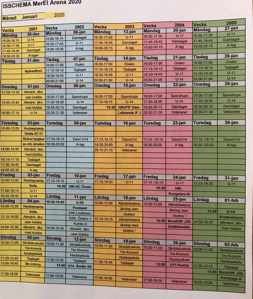 Gott nytt hockeyår . Isschema Januari !