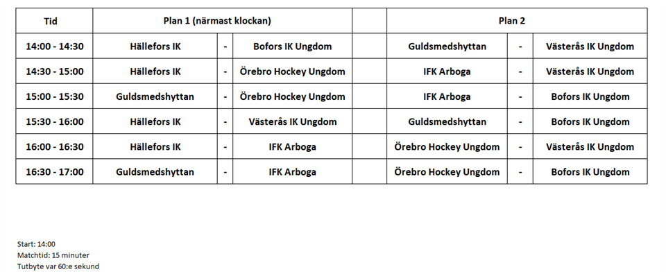 På söndag den 21 november är det första hemmapoolspelet. Vi spelar mellan kl 14:00 - 17:00 och samlingen är 13:00. Måndag den 15 novemer är sista dagen för att anmäla sig sen kommer vi göra ett ett schema för de saker som vi behöver hjälpas åt med för att få det att fungera(Cafeteria, speaker, klocka och sargbyggande). Nedanför finns spelschemat för de 6 lag som kommer att deltaga. F14 14 nov 2021 0kommentarer
